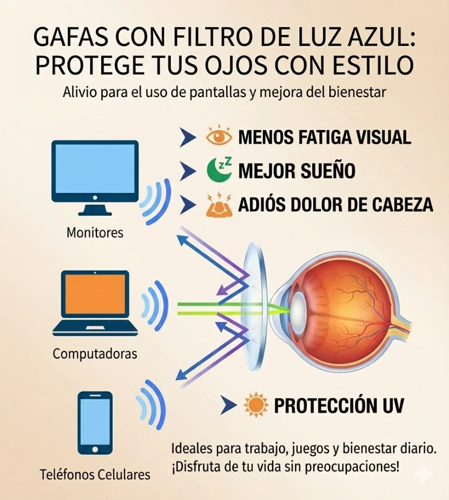 • Bloqueo Crítico (455nm): Filtra el destructivo espectro dañino de la luz LED en monitores modernos.